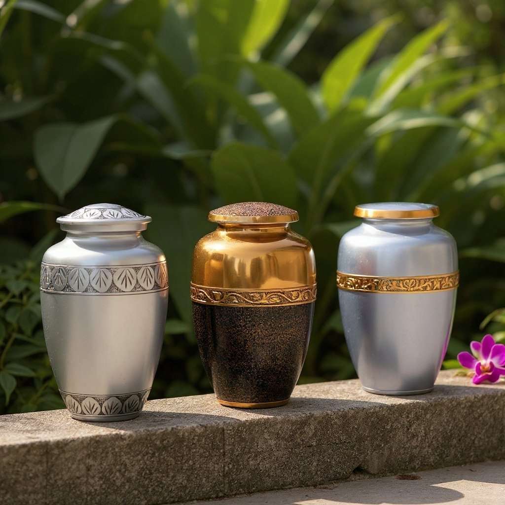 Red Mosaic Cloisonné Cremation Urn with Silver Leaf Band